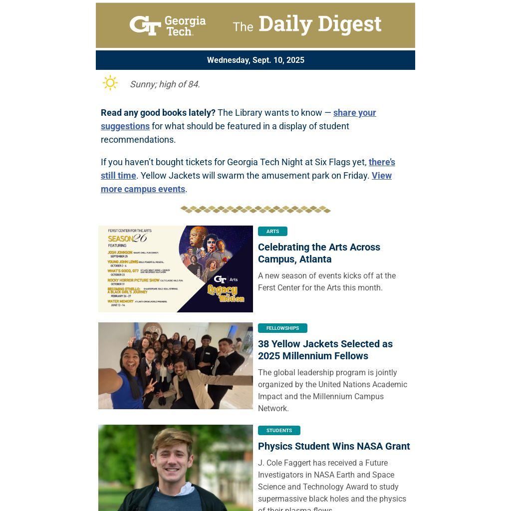 If you haven’t bought tickets for Georgia Tech Night at Six Flags yet, there’s still time. Yellow Jackets will swarm the amusement park on Friday. View more campus events.
