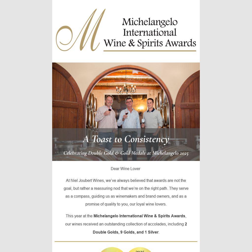 At Niel Joubert Wines, we’ve always believed that awards are not the goal, but rather a reassuring nod that we’re on the right path. They serve as a compass, guiding us as winemakers and brand owners, and as a promise of quality to you, our loyal wine lovers.