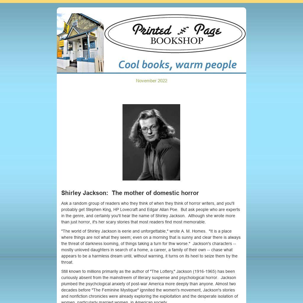 But she left us with some gems of the genre: "The Haunting of Hill House," "We Have Always Lived in the Castle," "The Witch," "Pillar of Salt" and dozens of other memorables stories. If there's a writer deserving of a new genertion of readers, we'd submit Shirley Jackson as our prime nominee.
