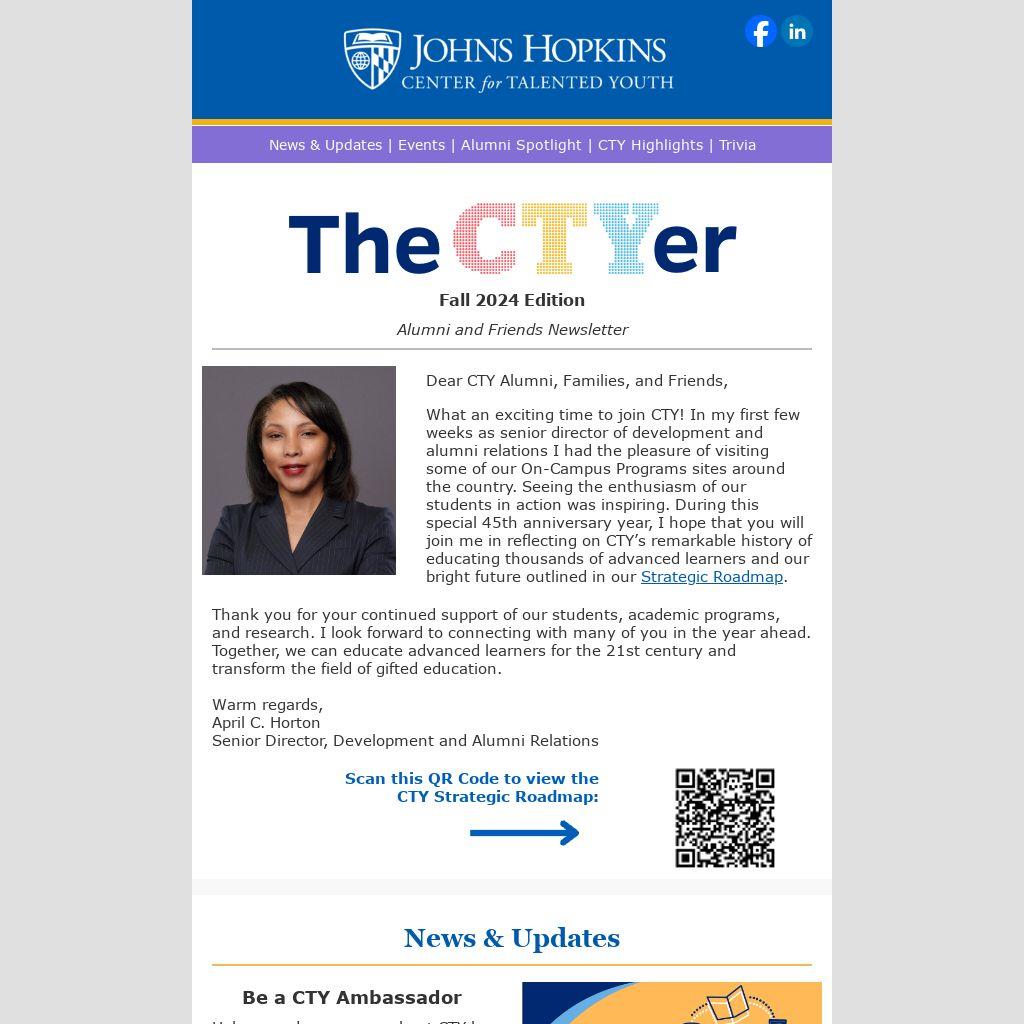Dear CTY Alumni, Families, and Friends,