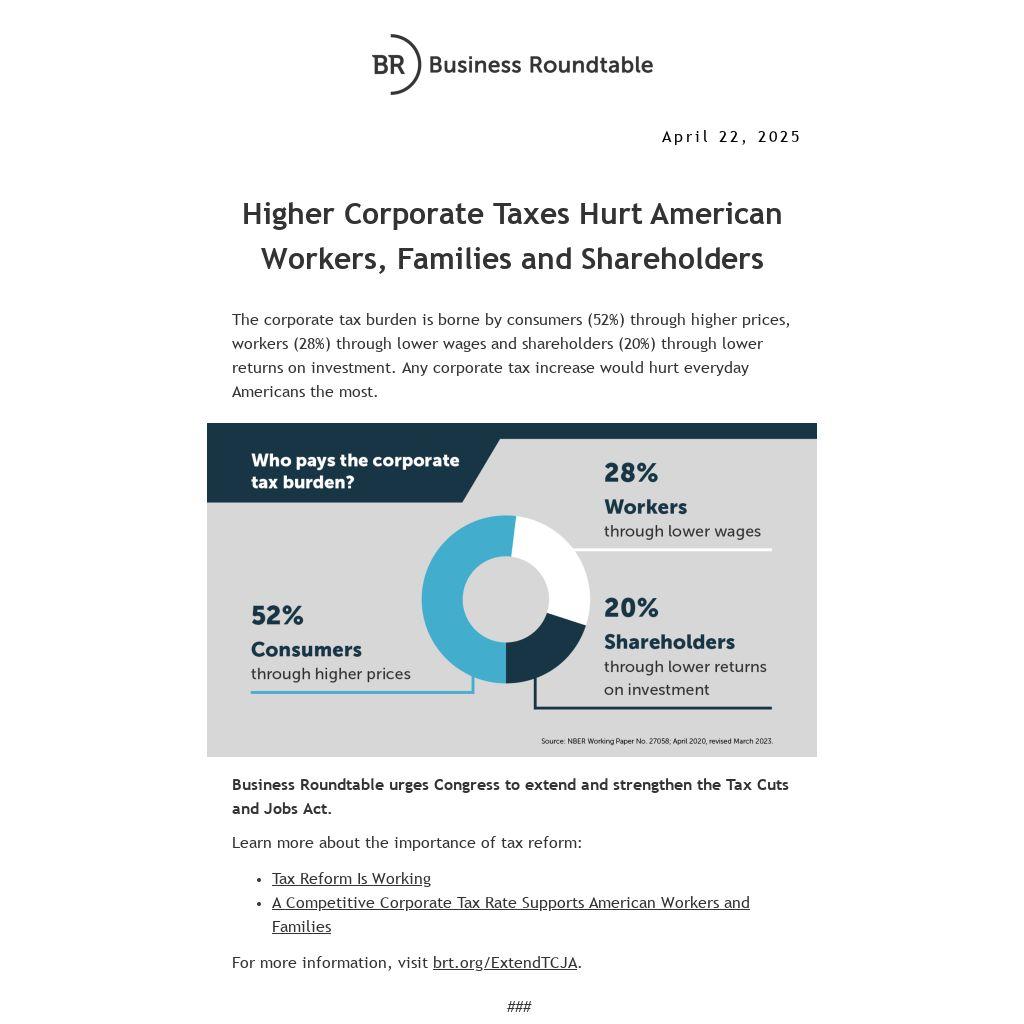 Business Roundtable is an association of more than 200 chief executive officers (CEOs) of America’s leading companies, representing every sector of the U.S. economy. Business Roundtable CEOs lead U.S.-based companies that support one in four American jobs and almost a quarter of U.S. GDP. Through CEO-led policy committees, Business Roundtable members develop and advocate directly for policies to promote a thriving U.S. economy and expanded opportunity for all Americans.