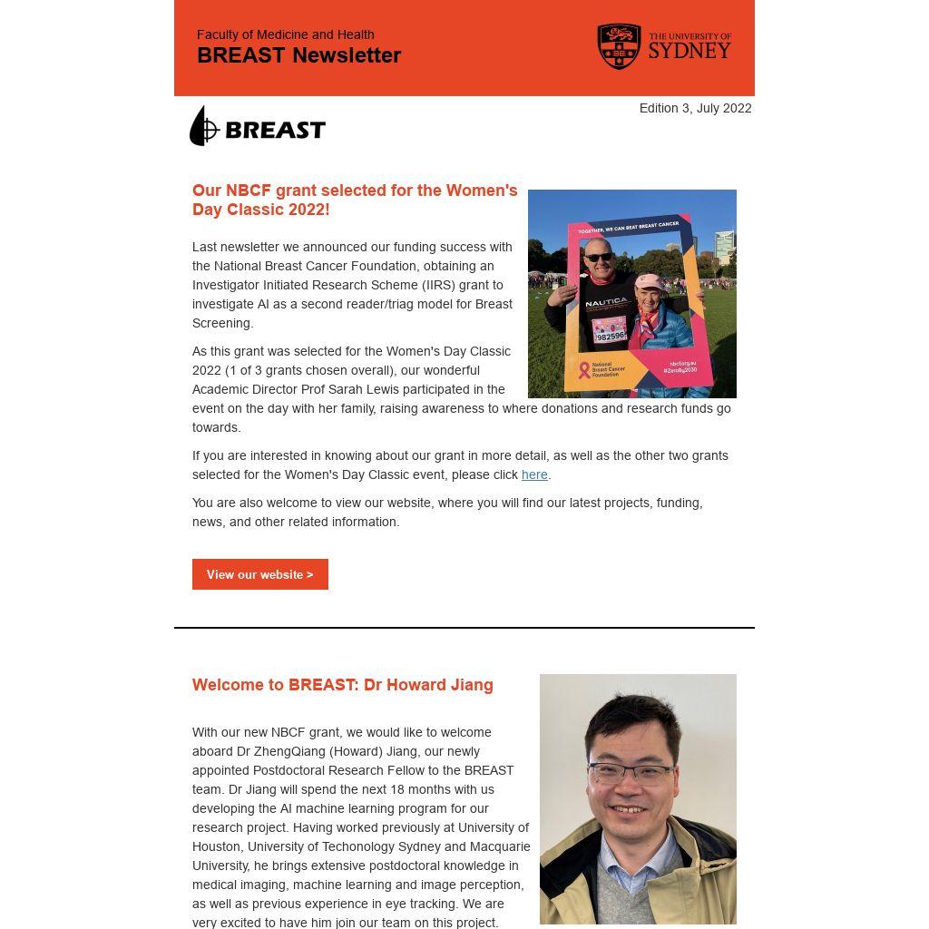 Last newsletter we announced our funding success with the National Breast Cancer Foundation, obtaining an Investigator Initiated Research Scheme (IIRS) grant to investigate AI as a second reader/triag model for Breast Screening.