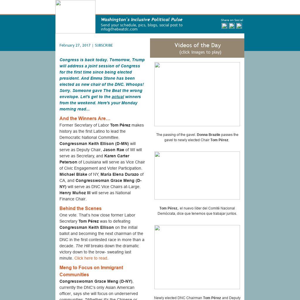 Congress is back today. Tomorrow, Trump will address a joint session of Congress for the first time since being elected president. And Emma Stone has been elected as new chair of the DNC. Whoops! Sorry. Someone gave The Beat the wrong envelope. Let's get to the actual winners from the weekend. Here's your Monday morning read...