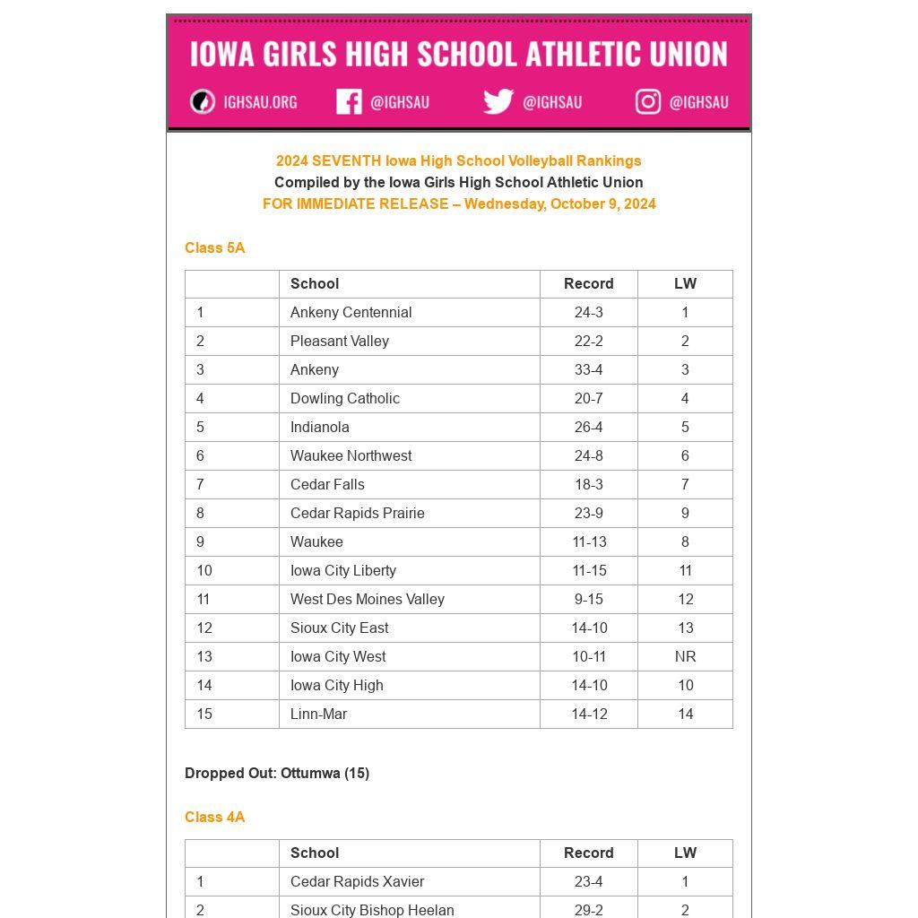 2024 SEVENTH Iowa High School Volleyball Rankings