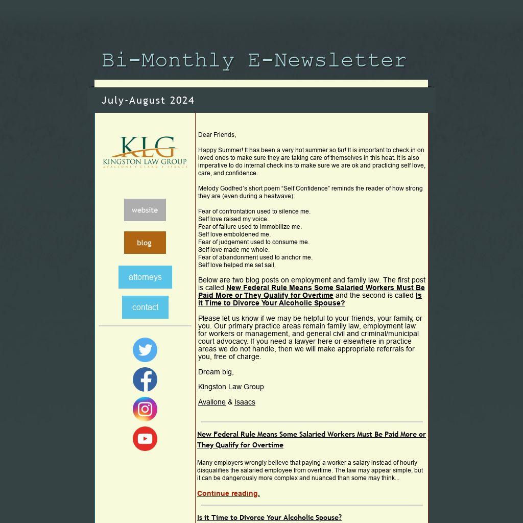 Below are two blog posts on employment and family law. The first post is called New Federal Rule Means Some Salaried Workers Must Be Paid More or They Qualify for Overtime and the second is called Is it Time to Divorce Your Alcoholic Spouse?