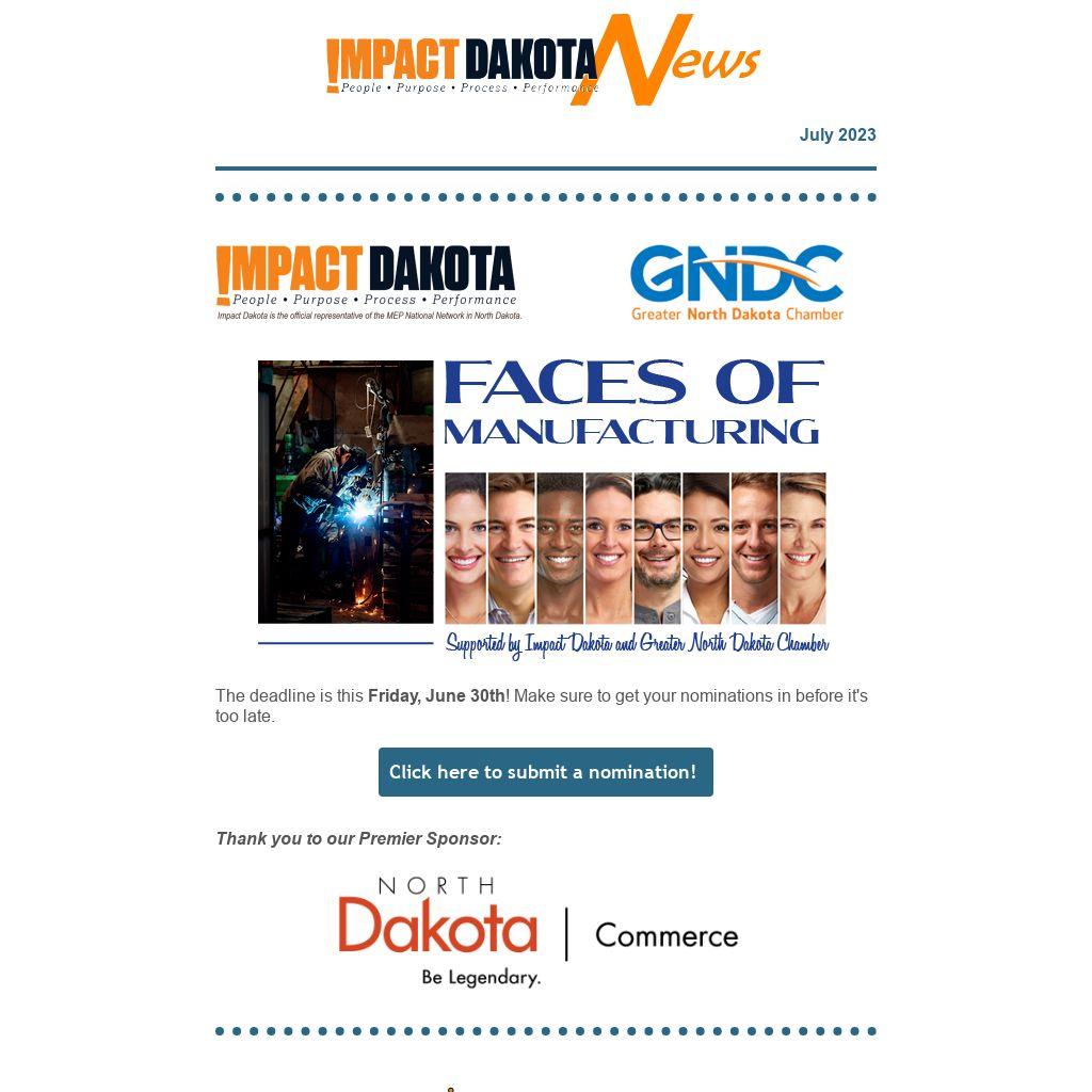 Impact Dakota has limited funds available to organizations to assist with Manufacturing Day activities in North Dakota. Organizations may apply for funds up to $1,500. The funds will be awarded on a first-come, first-served basis. Application deadline is September 15th