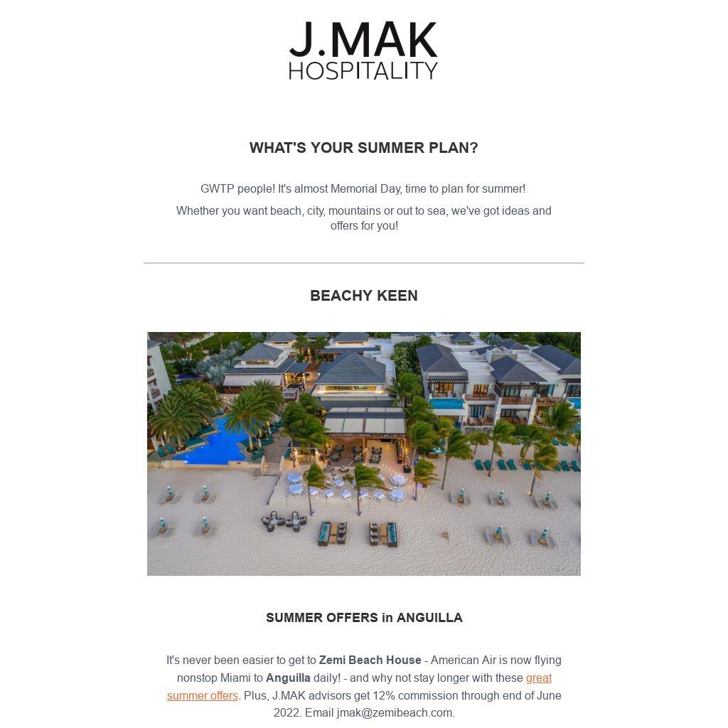 It's never been easier to get to Zemi Beach House - American Air is now flying nonstop Miami to Anguilla daily! - and why not stay longer with these great summer offers. Plus, J.MAK advisors get 12% commission through end of June 2022. Email jmak@zemibeach.com.