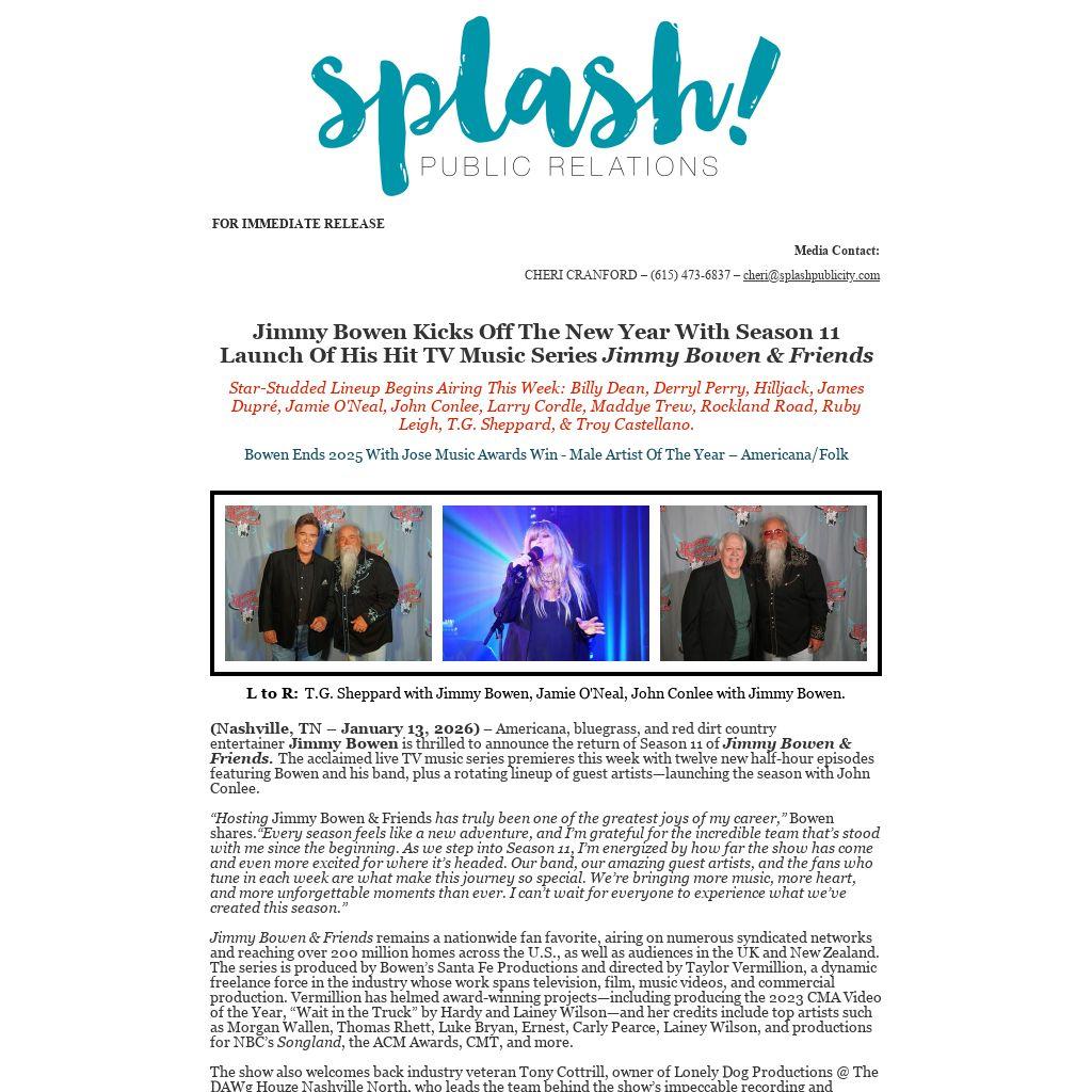 CHERI CRANFORD – (615) 473-6837 – cheri@splashpublicity.com
