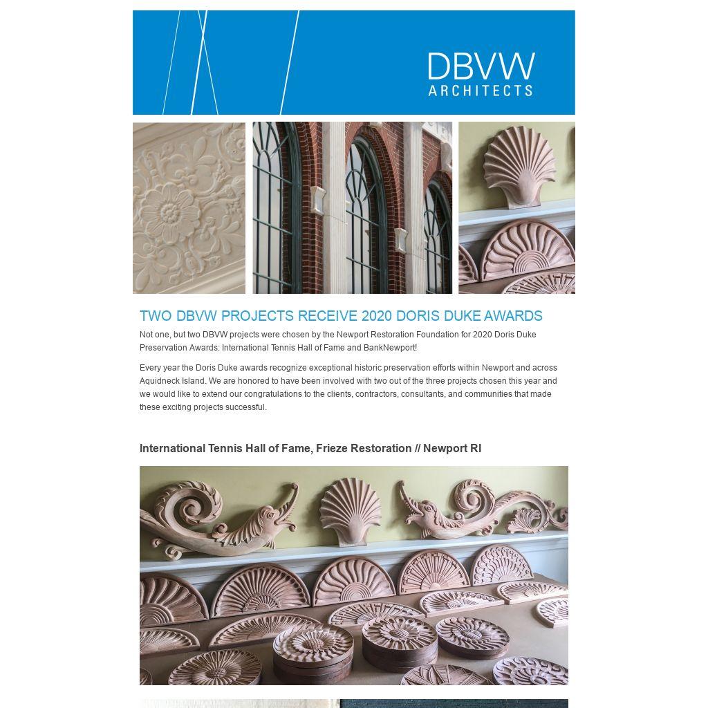 Not one, but two DBVW projects were chosen by the Newport Restoration Foundation for 2020 Doris Duke Preservation Awards: International Tennis Hall of Fame and BankNewport!