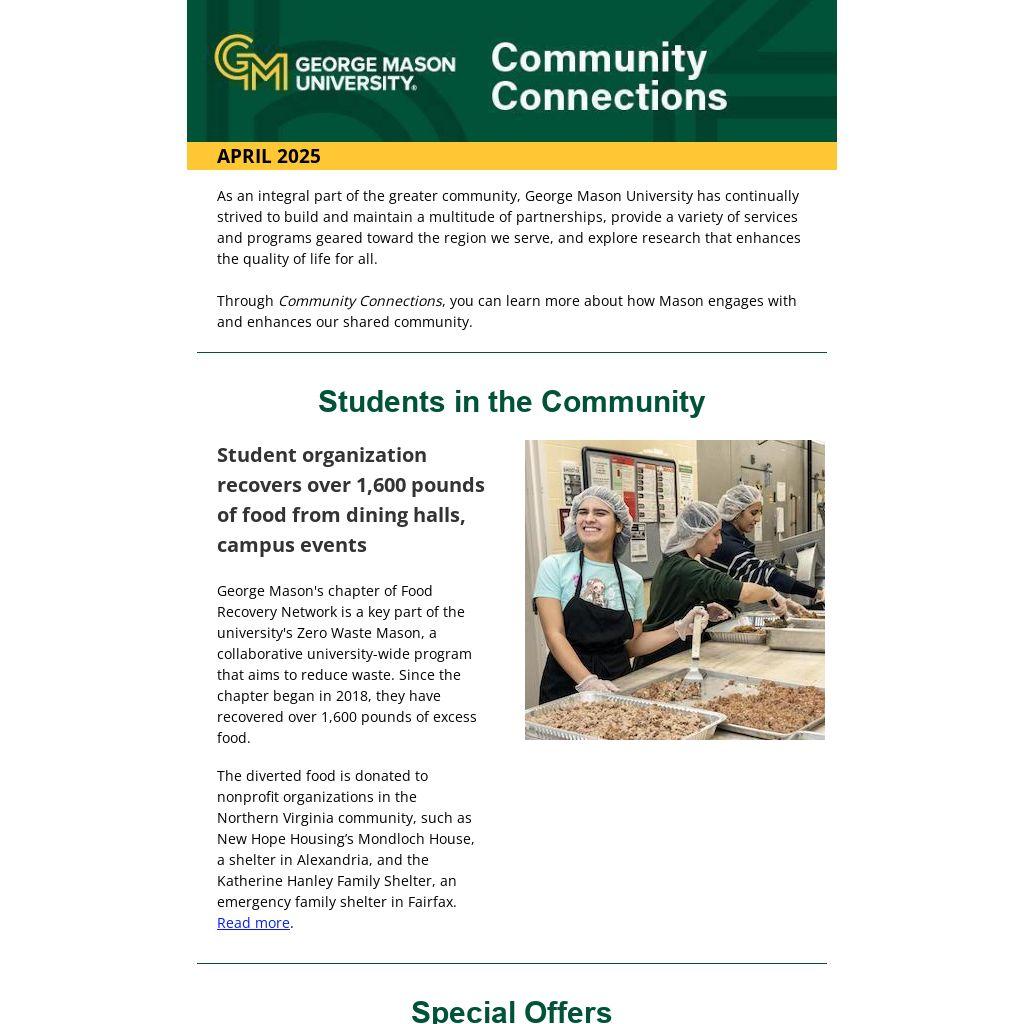 Through Community Connections, you can learn more about how Mason engages with and enhances our shared community.