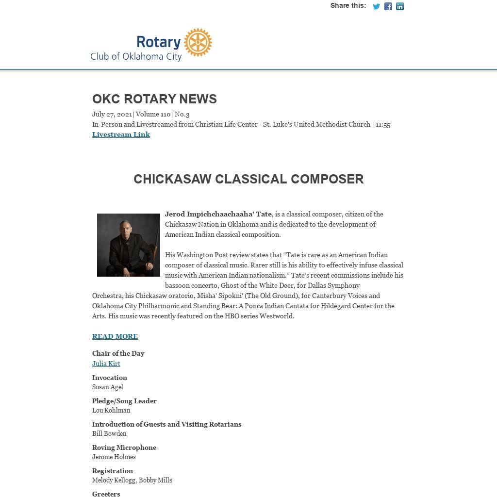 | OKC Rotary NewsJuly 27, 2021| Volume 110| No.3