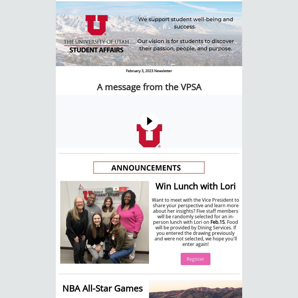 This month, NBA stars from across the globe will be traveling to Salt Lake City’s Vivint Arena and the University of Utah’s Jon M. Huntsman Center for the 2023 NBA All-Star events. The public events are scheduled for Feb. 17-19.