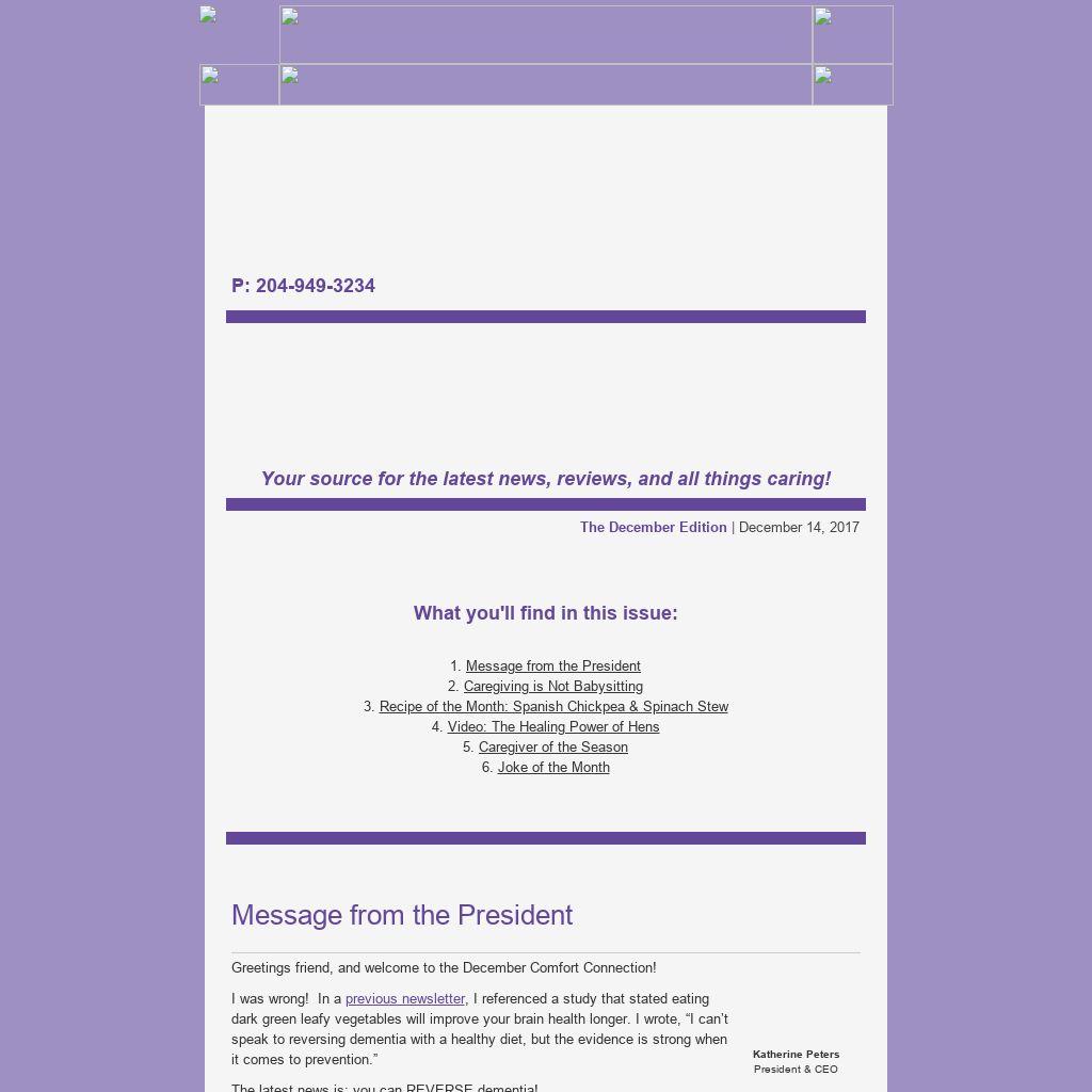 Greetings friend, and welcome to the December Comfort Connection!