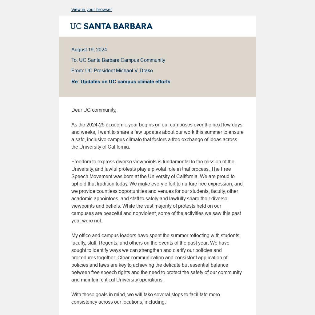 Updates on UC campus climate efforts