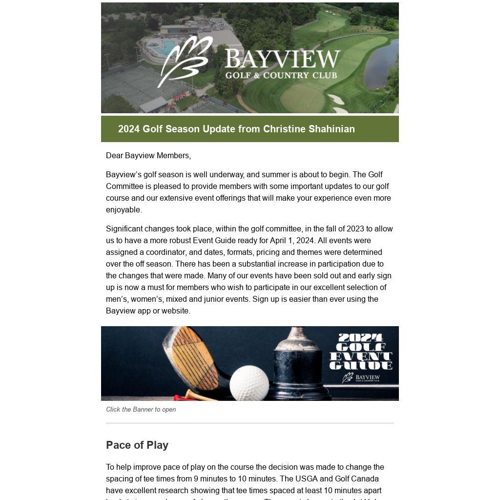 Keep Bayview beautiful and enjoy a wonderful golf season