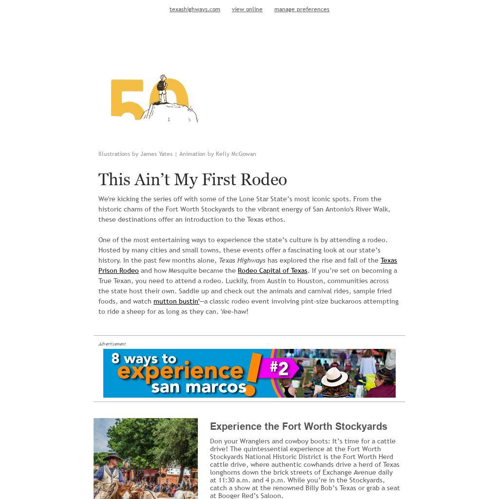 You are receiving this message from Texas Highways magazine because you requested it or because you have contacted Texas Highways magazine and provided your email address. To ensure our message always reaches your inbox, please add us to your address book.