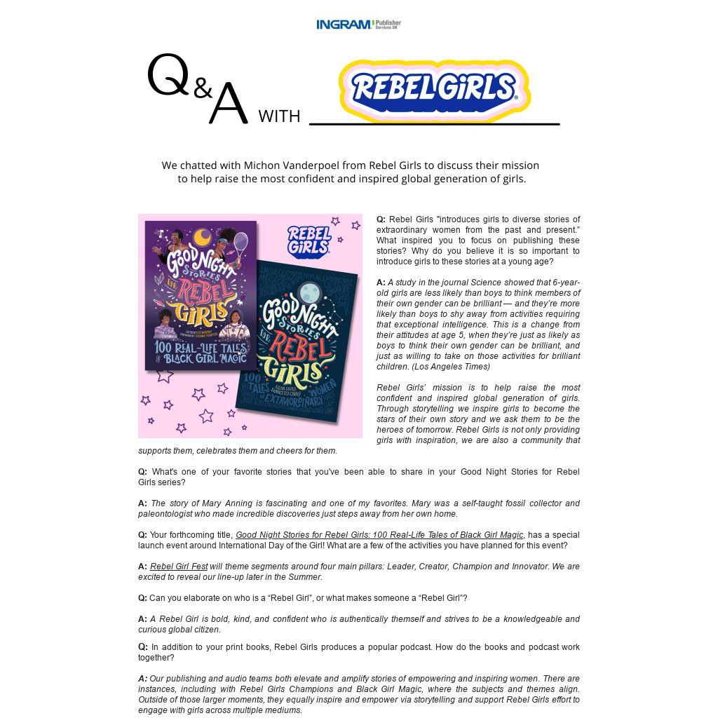 A: Our publishing and audio teams both elevate and amplify stories of empowering and inspiring women. There are instances, including with Rebel Girls Champions and Black Girl Magic, where the subjects and themes align. Outside of those larger moments, they equally inspire and empower via storytelling and support Rebel Girls effort to engage with girls across multiple mediums.