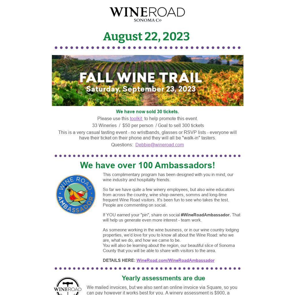 DETAILS HERE: WineRoad.com/WineRoadAmbassador