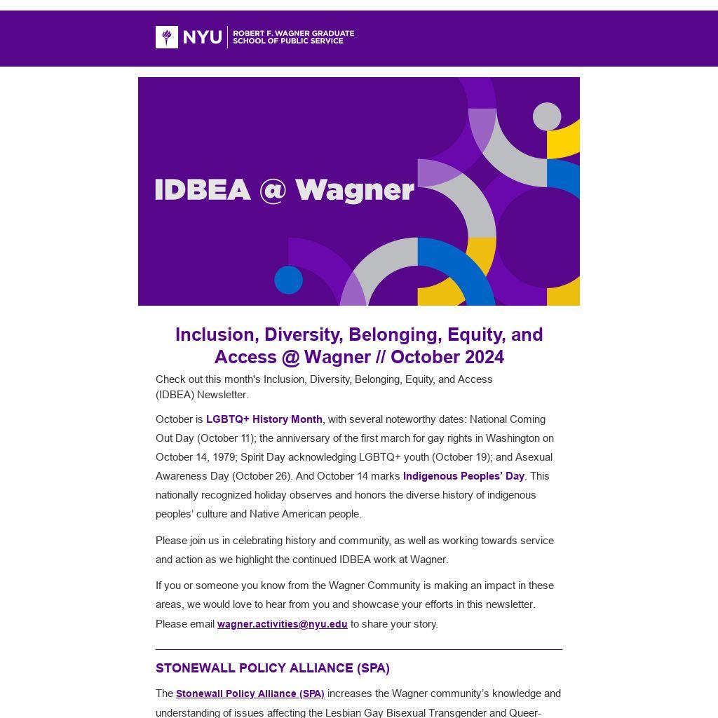 Please join us in celebrating history and community, as well as working towards service and action as we highlight the continued IDBEA work at Wagner.