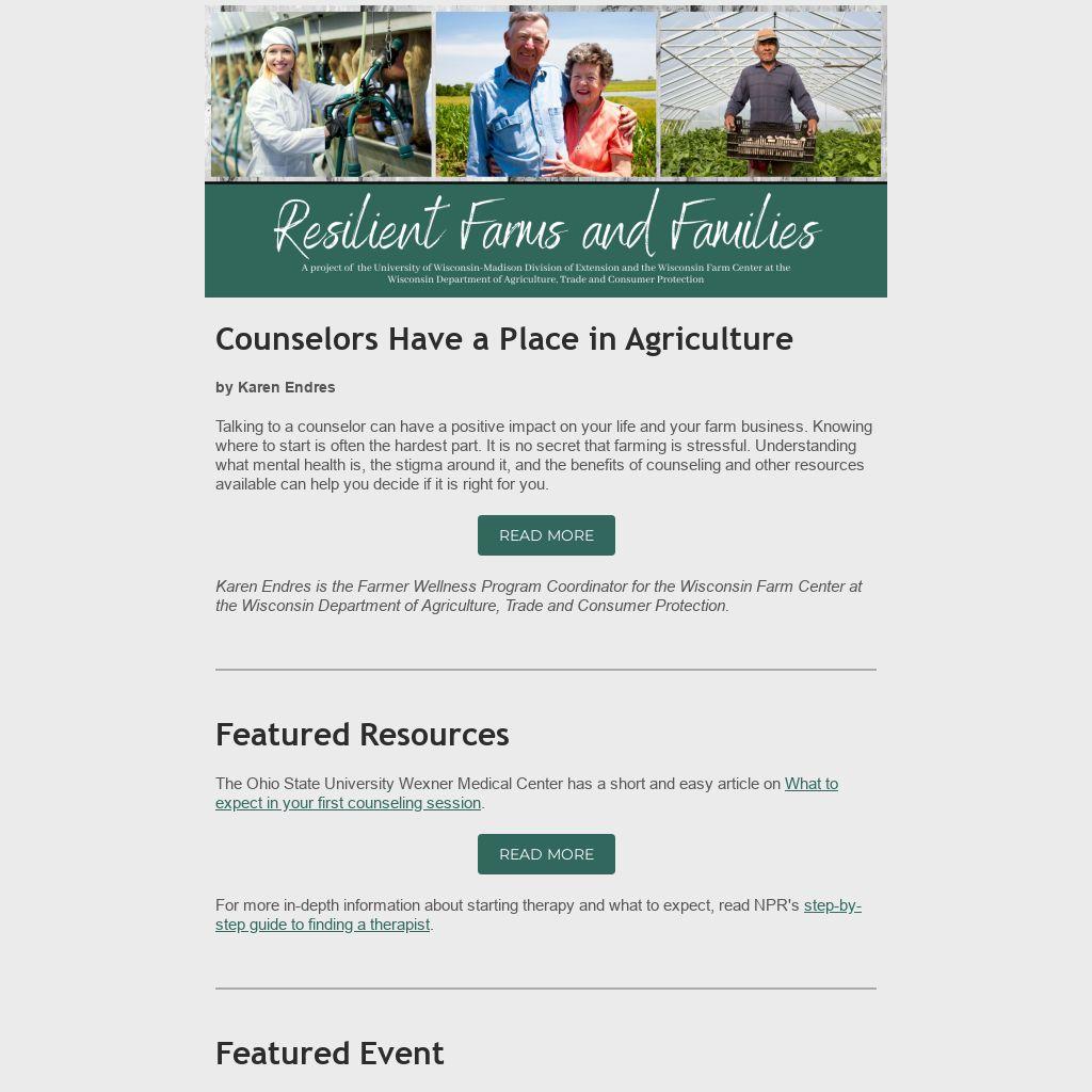 Caption: The Wisconsin Farm Center provides access to free, confidential counseling sessions with licensed mental health professionals by phone or video. To learn more about vouchers and participating providers offered through the Wisconsin Farm Center, visit farmcenter.wi.gov or call (800) 942-2474.
