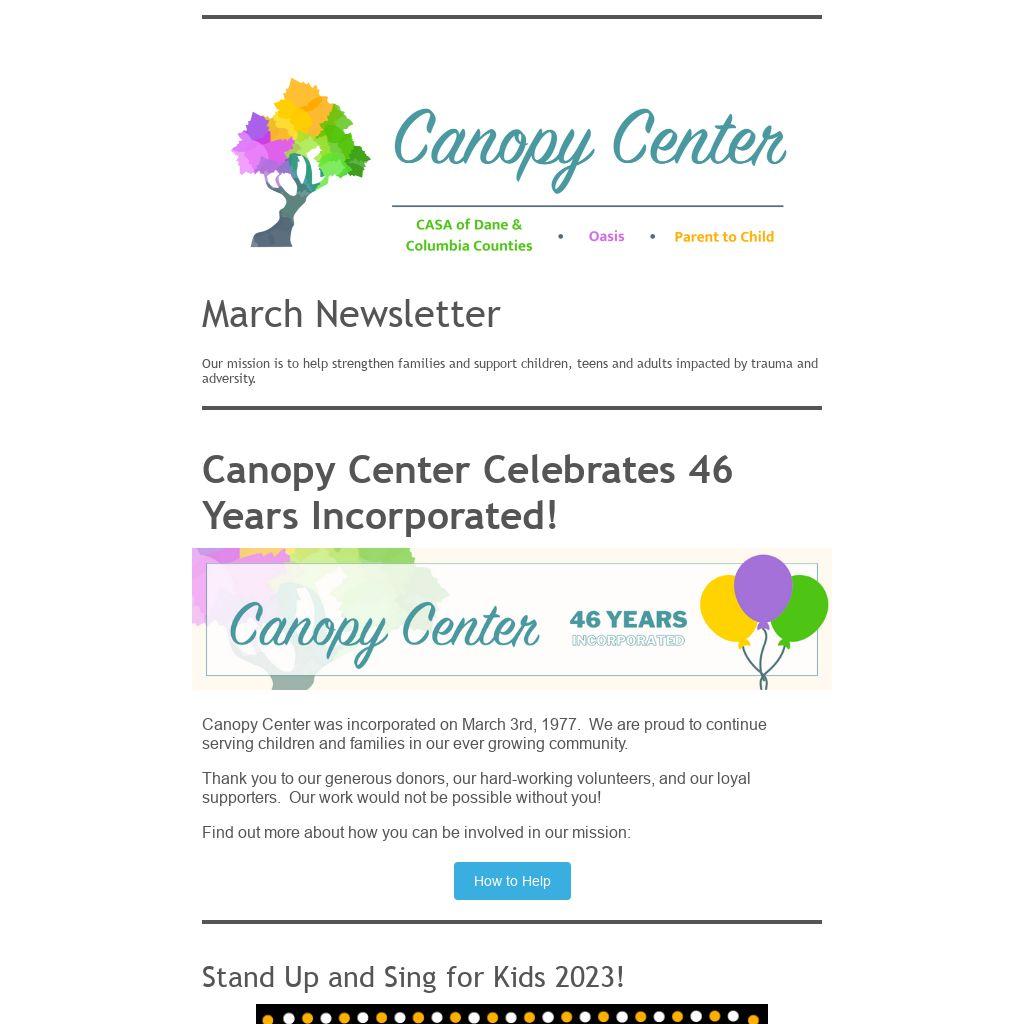 A sponsorship is a wonderful opportunity for your business to support Canopy Center's important work while also receiving meaningful recognition in the Dane County community.