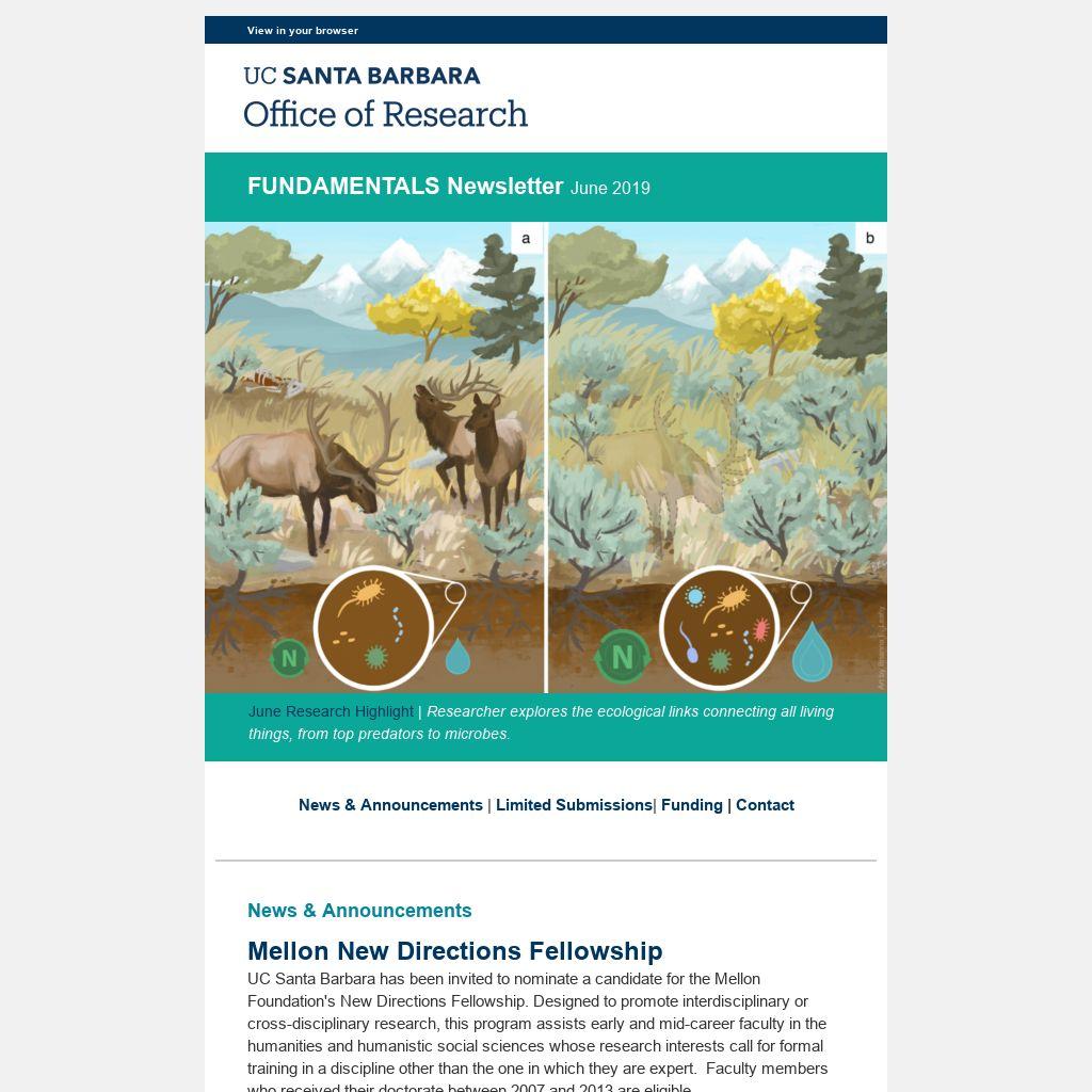 The Research Development unit of the Office of Research at the UC Santa Barbara publishes FUNDamentals. Click here to get in touch with Research Development staff regarding your proposal development needs.