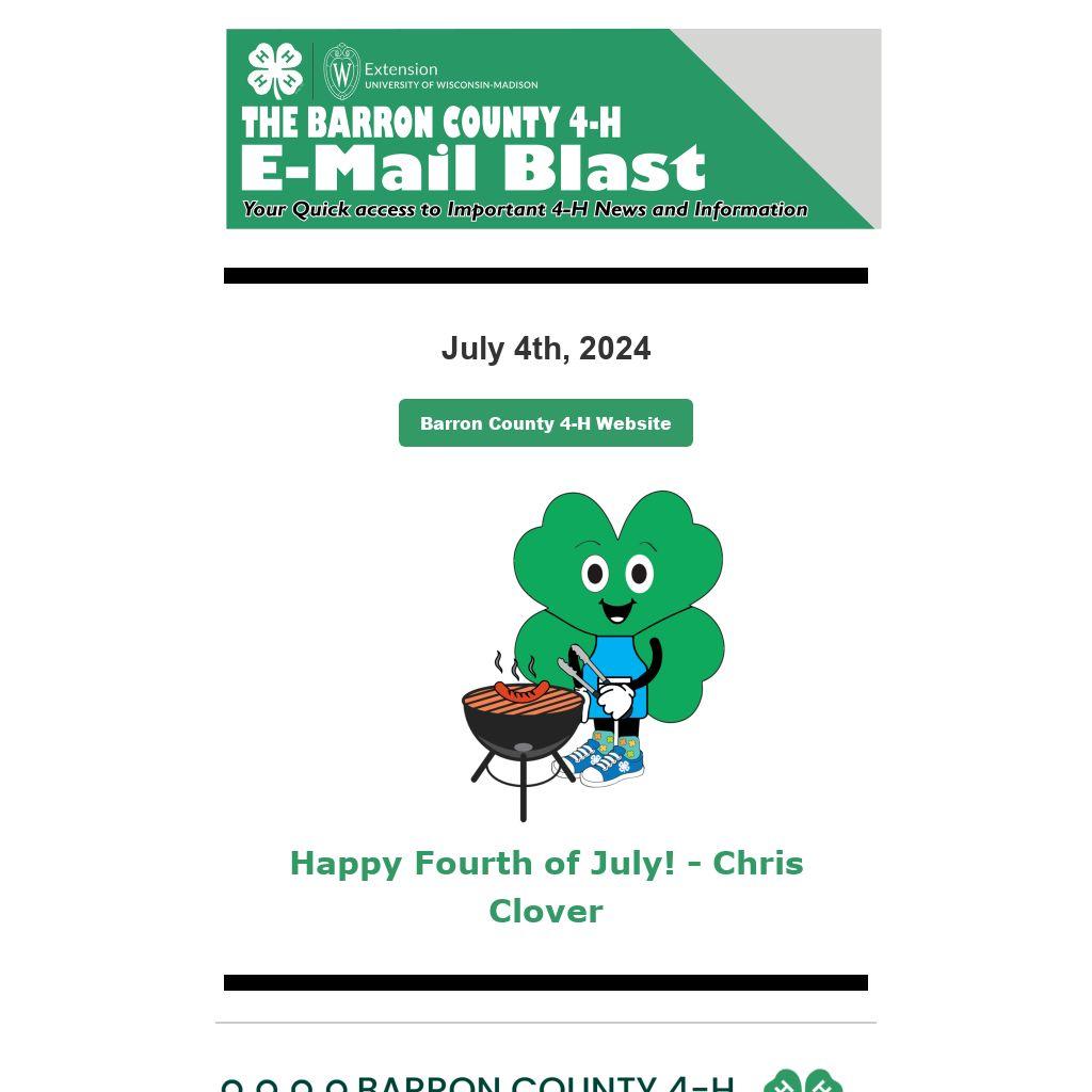 Barron County 4-H News - E-blast 7/4/2024 (Happy 4th of July from 4-H!)