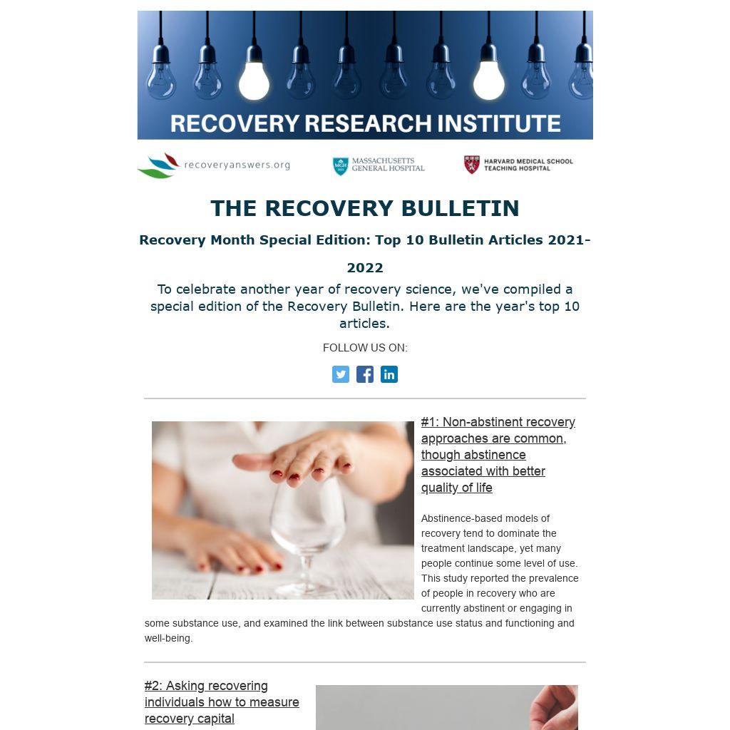 ABOUT: The Recovery Research Institute is a non-profit research institute of the Massachusetts General Hospital, a teaching hospital of Harvard Medical School.