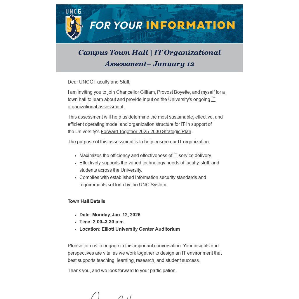 Please join us to engage in this important conversation. Your insights and perspectives are vital as we work together to design an IT environment that best supports teaching, learning, research, and student success.