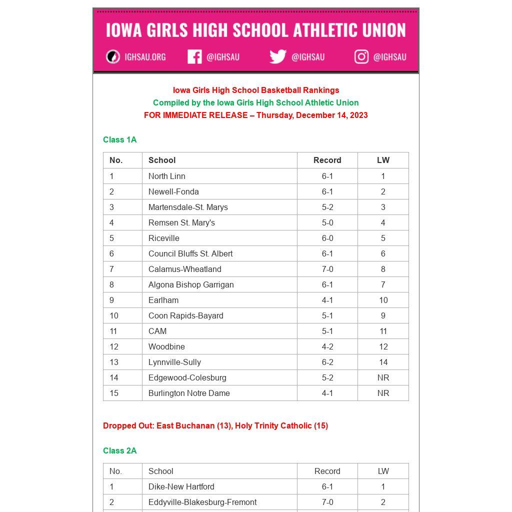 Dropped Out: East Buchanan (13), Holy Trinity Catholic (15)