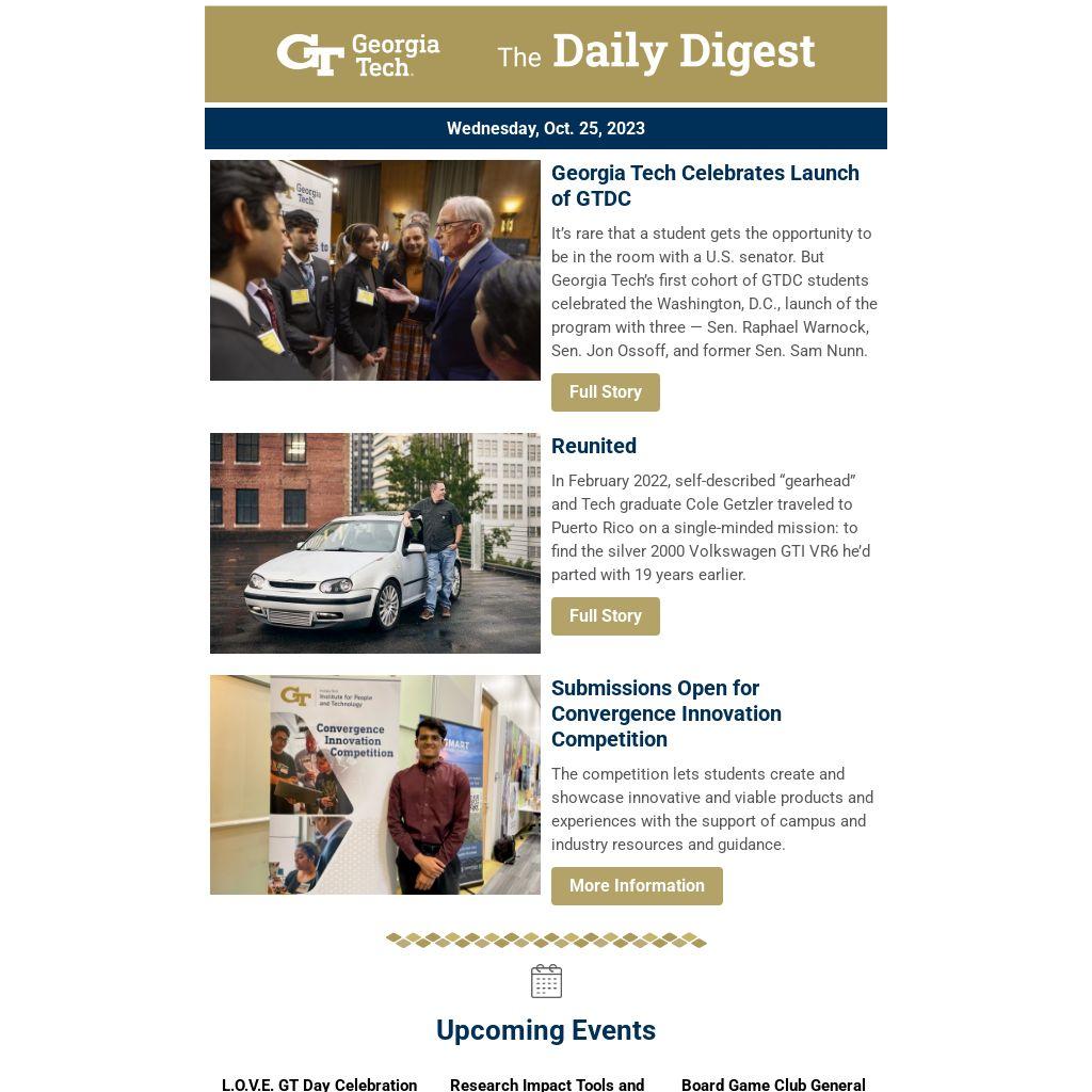It’s rare that a student gets the opportunity to be in the room with a U.S. senator. But Georgia Tech’s first cohort of GTDC students celebrated the Washington, D.C., launch of the program with three — Sen. Raphael Warnock, Sen. Jon Ossoff, and former Sen. Sam Nunn.