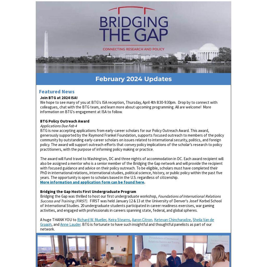 Send it to us at BridgingTheGap@du.edu (Include "Newsletter Update" in the header of your email).