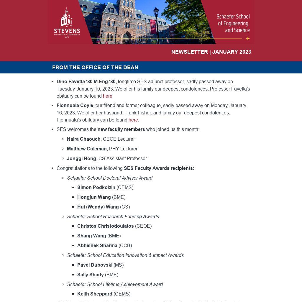 Dino Favetta '80 M.Eng.'80, longtime SES adjunct professor, sadly passed away on Tuesday, January 10, 2023. We offer his family our deepest condolences. Professor Favetta's obituary can be found here.