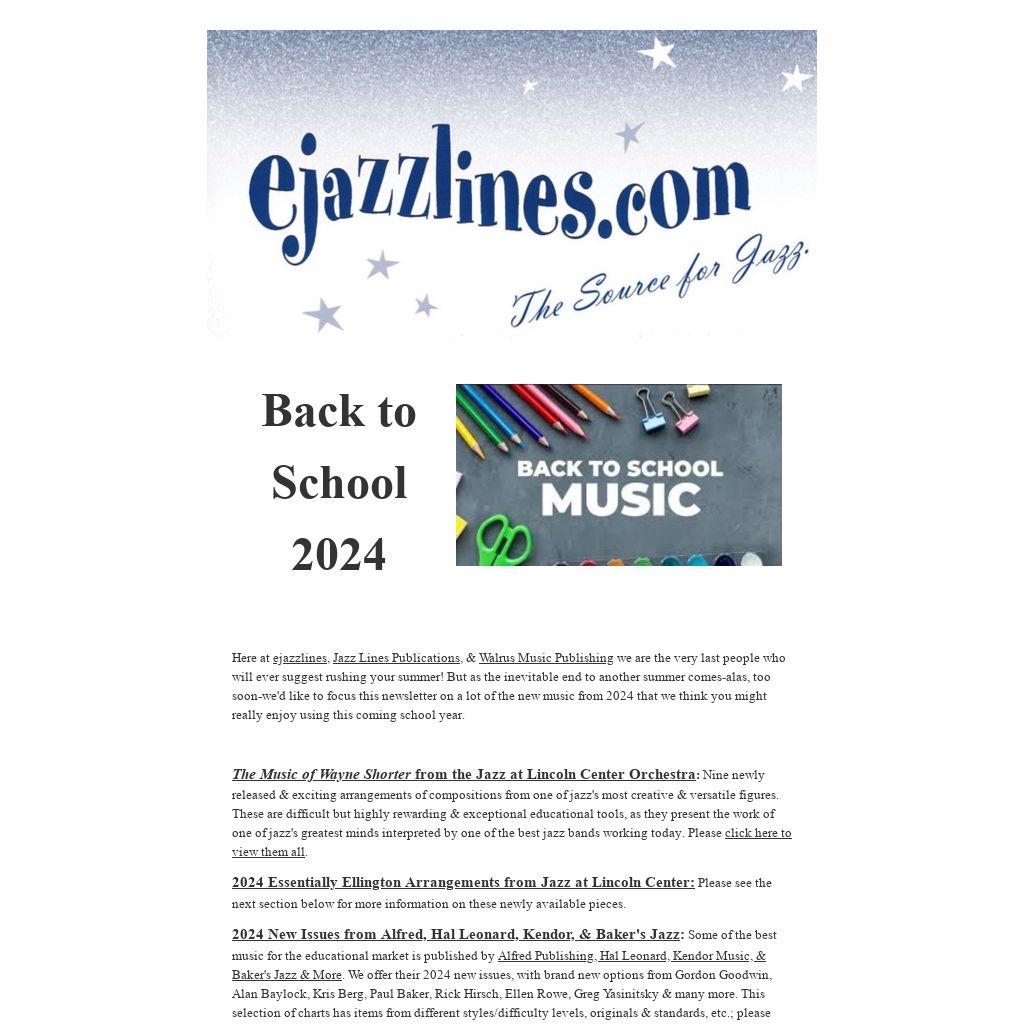 Here at ejazzlines, Jazz Lines Publications, & Walrus Music Publishing we are the very last people who will ever suggest rushing your summer! But as the inevitable end to another summer comes-alas, too soon-we'd like to focus this newsletter on a lot of the new music from 2024 that we think you might really enjoy using this coming school year.