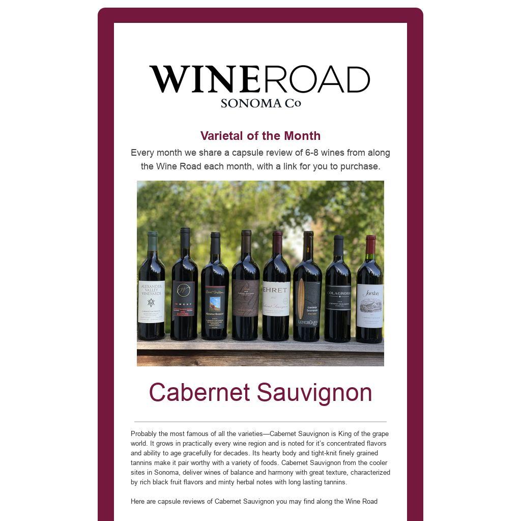 | Varietal of the Month Every month we share a capsule review of 6-8 wines from along the Wine Road each month, with a link for you to purchase.