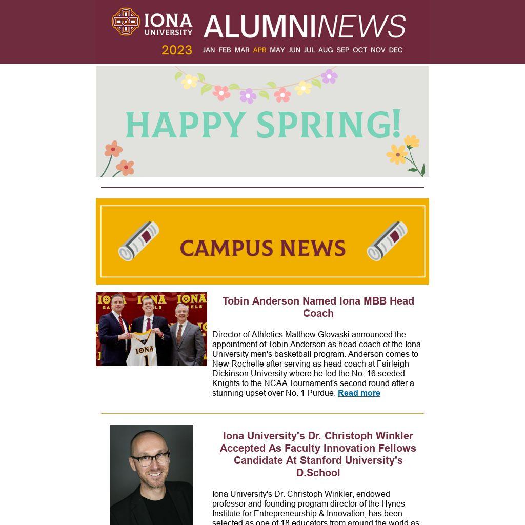 | What's new with our alumni? Share any job updates, award recognitions, or community involvement with us for a feature! Email us at alumni@iona.edu.