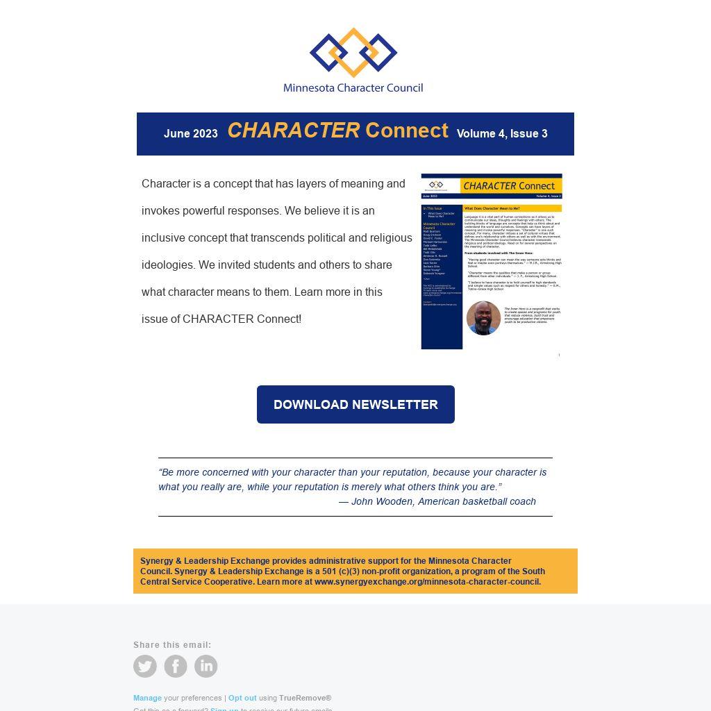 Synergy & Leadership Exchange provides administrative support for the Minnesota Character Council. Synergy & Leadership Exchange is a 501 (c)(3) non-profit organization, a program of the South Central Service Cooperative. Learn more at www.synergyexchange.org/minnesota-character-council.