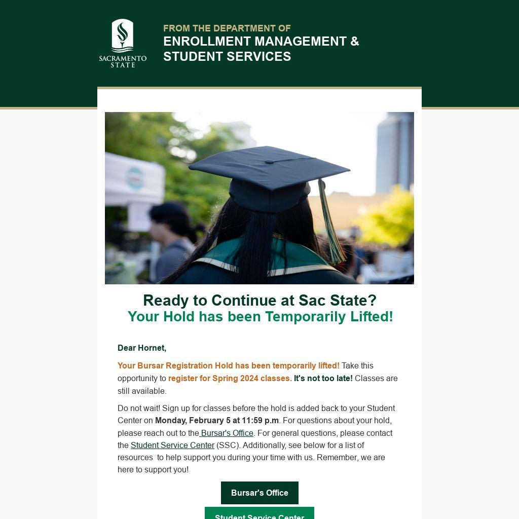 The Student Service Center (SSC) provides you with a wide range of information and transactions related to enrollment, registration, financial aid, and more! They have advisors and counselors available to assist you in-person, by phone, or by email.