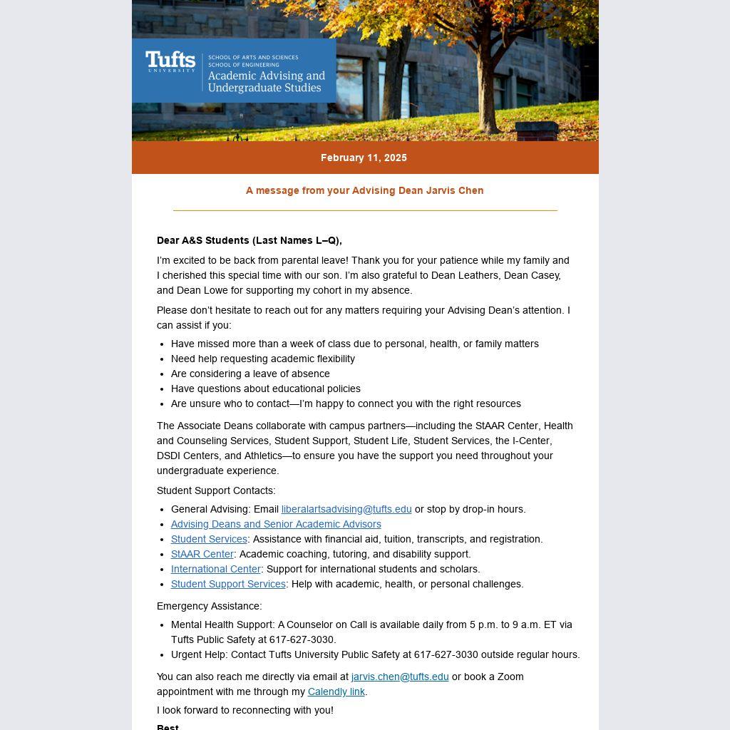 Dear A&S Students (Last Names L–Q),