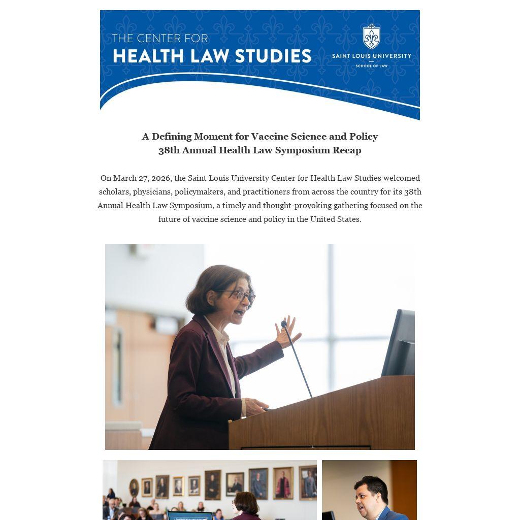 The Health Law Symposium is an annual event of the Center for Health Law Studies and features leading voices engaged with some of the most pressing issues in health law and policy. Proceedings from the Symposium are published in the Saint Louis University Journal of Health Law & Policy.