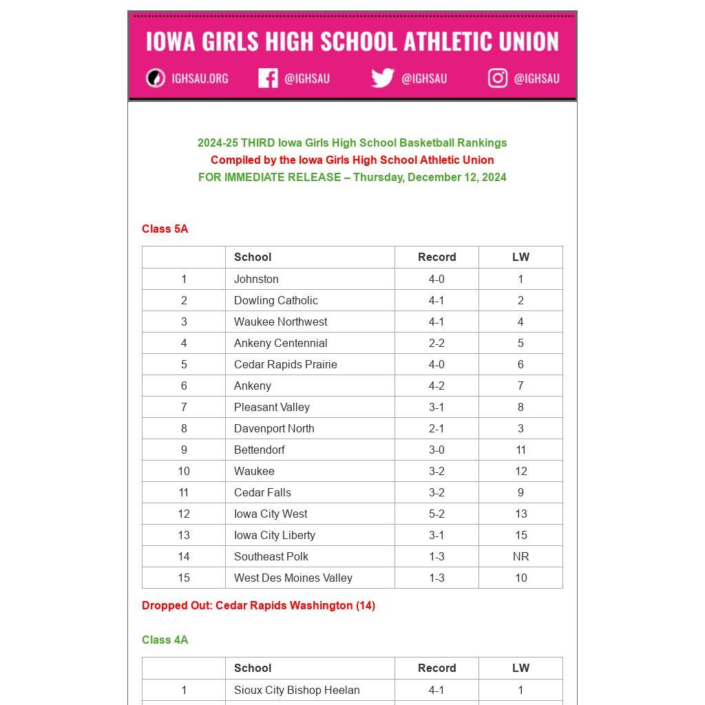 2024-25 THIRD Iowa Girls High School Basketball Rankings