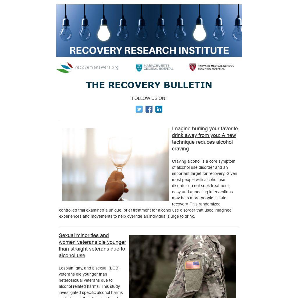 ABOUT: The Recovery Research Institute is a non-profit research institute of the Massachusetts General Hospital, a teaching hospital of Harvard Medical School.