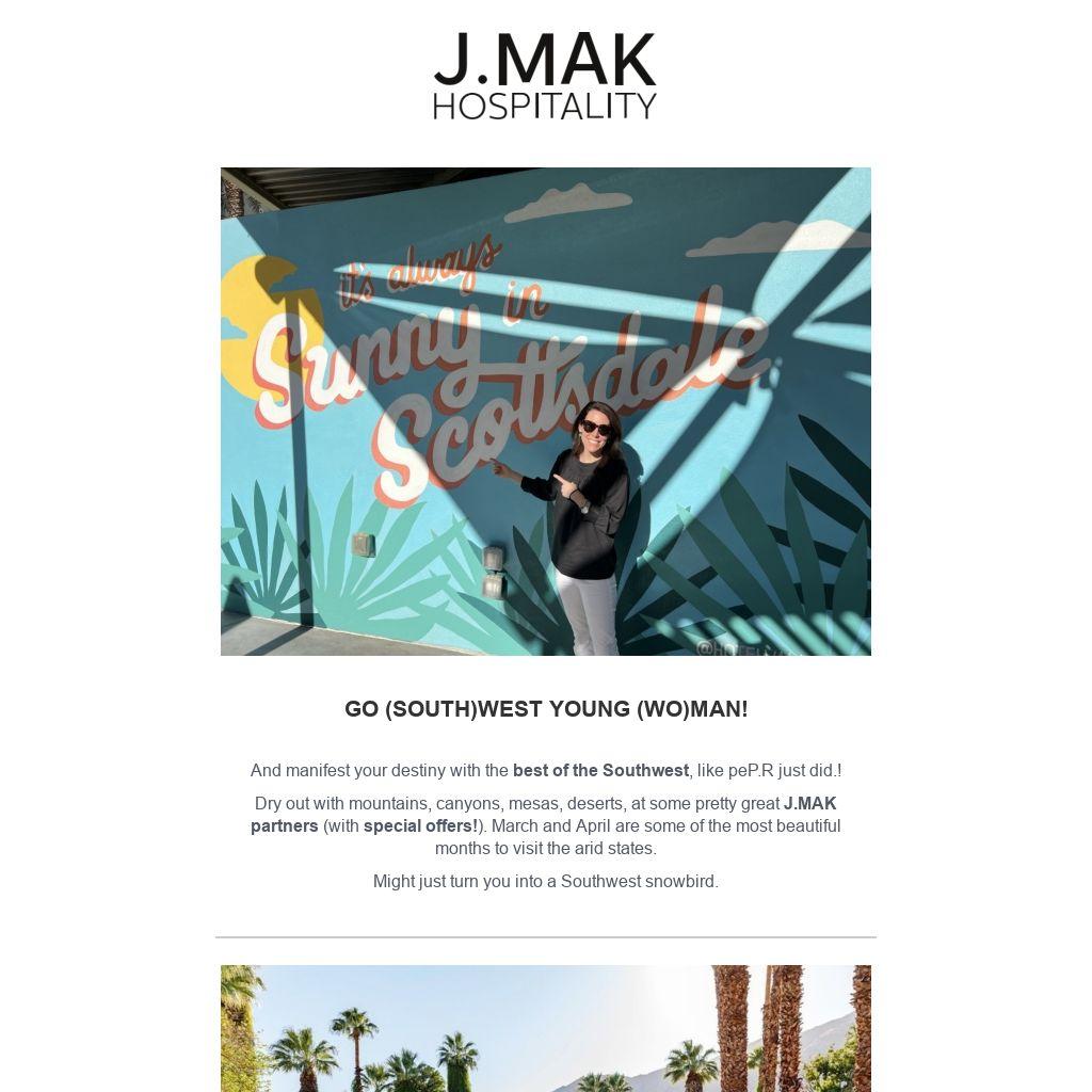 Dry out with mountains, canyons, mesas, deserts, at some pretty great J.MAK partners (with special offers!). March and April are some of the most beautiful months to visit the arid states.