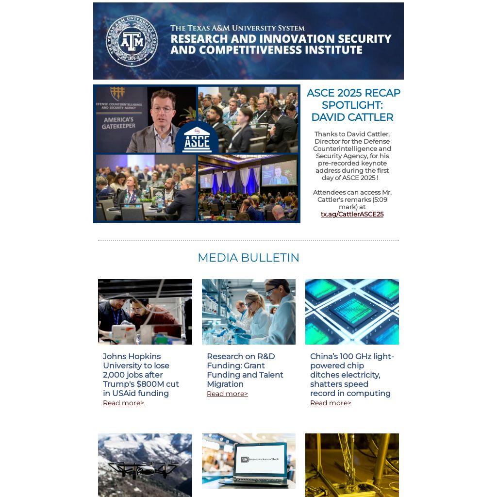 Thanks to David Cattler, Director for the Defense Counterintelligence and Security Agency, for his pre-recorded keynote address during the first day of ASCE 2025 !