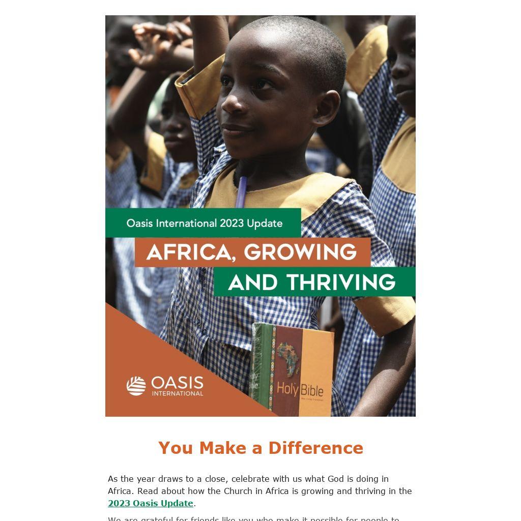As the year draws to a close, celebrate with us what God is doing in Africa. Read about how the Church in Africa is growing and thriving in the 2023 Oasis Update.