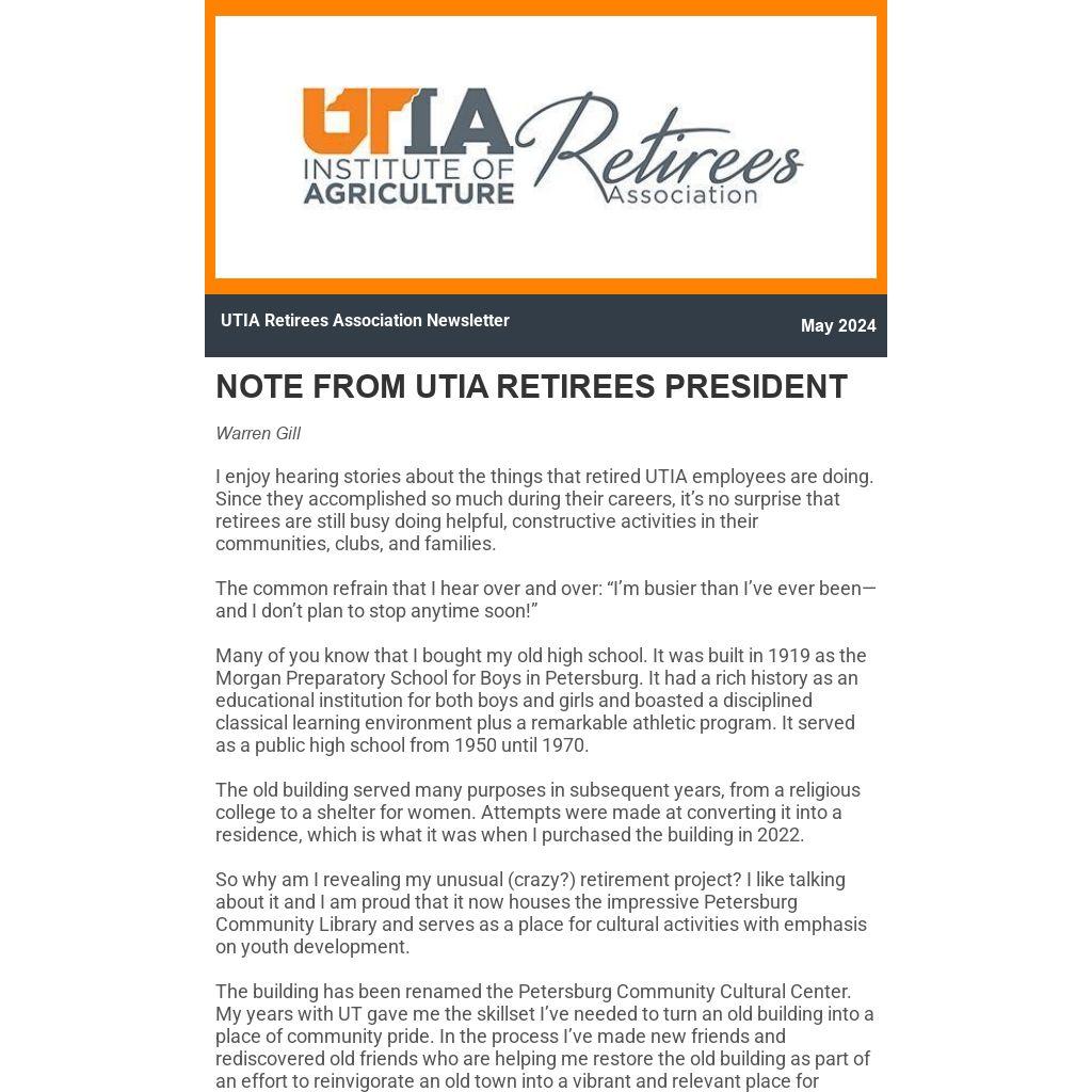 NOTE FROM UTIA RETIREES PRESIDENT |