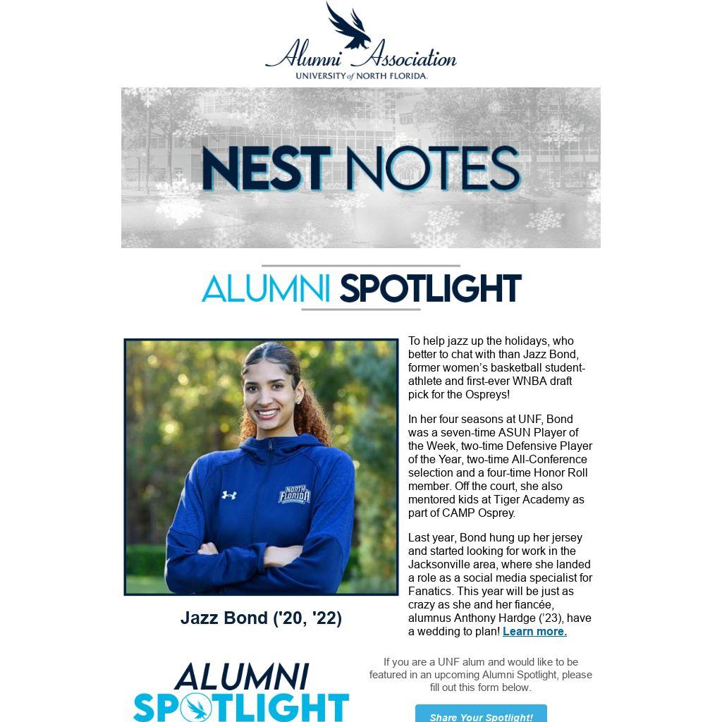 | If you are a UNF alum and would like to be featured in an upcoming Alumni Spotlight, please fill out this form below.