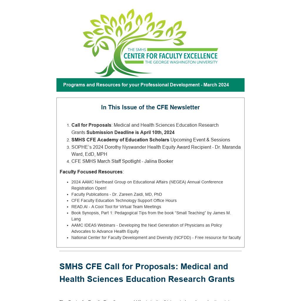 - Call for Proposals: Medical and Health Sciences Education Research Grants Submission Deadline is April 10th, 2024