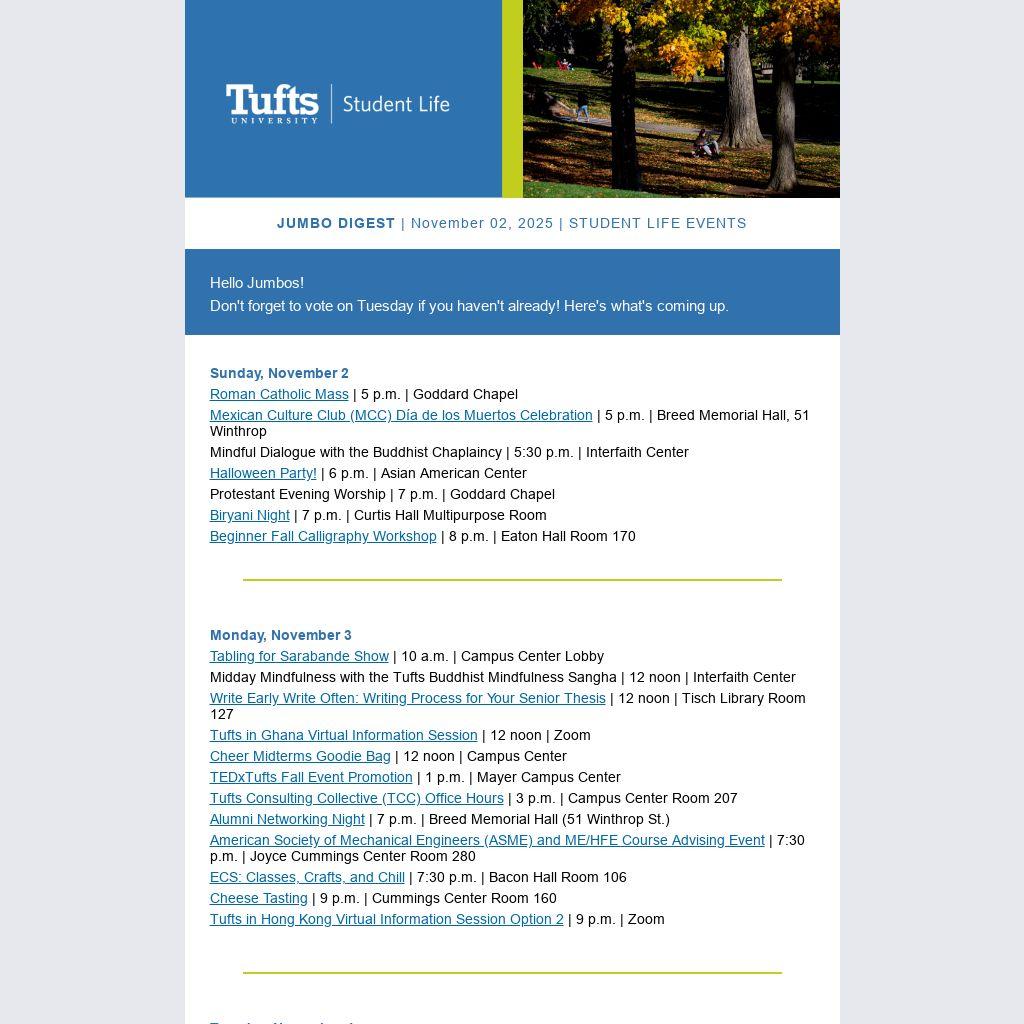 JUMBO DIGEST | November 02, 2025 | STUDENT LIFE EVENTS | |