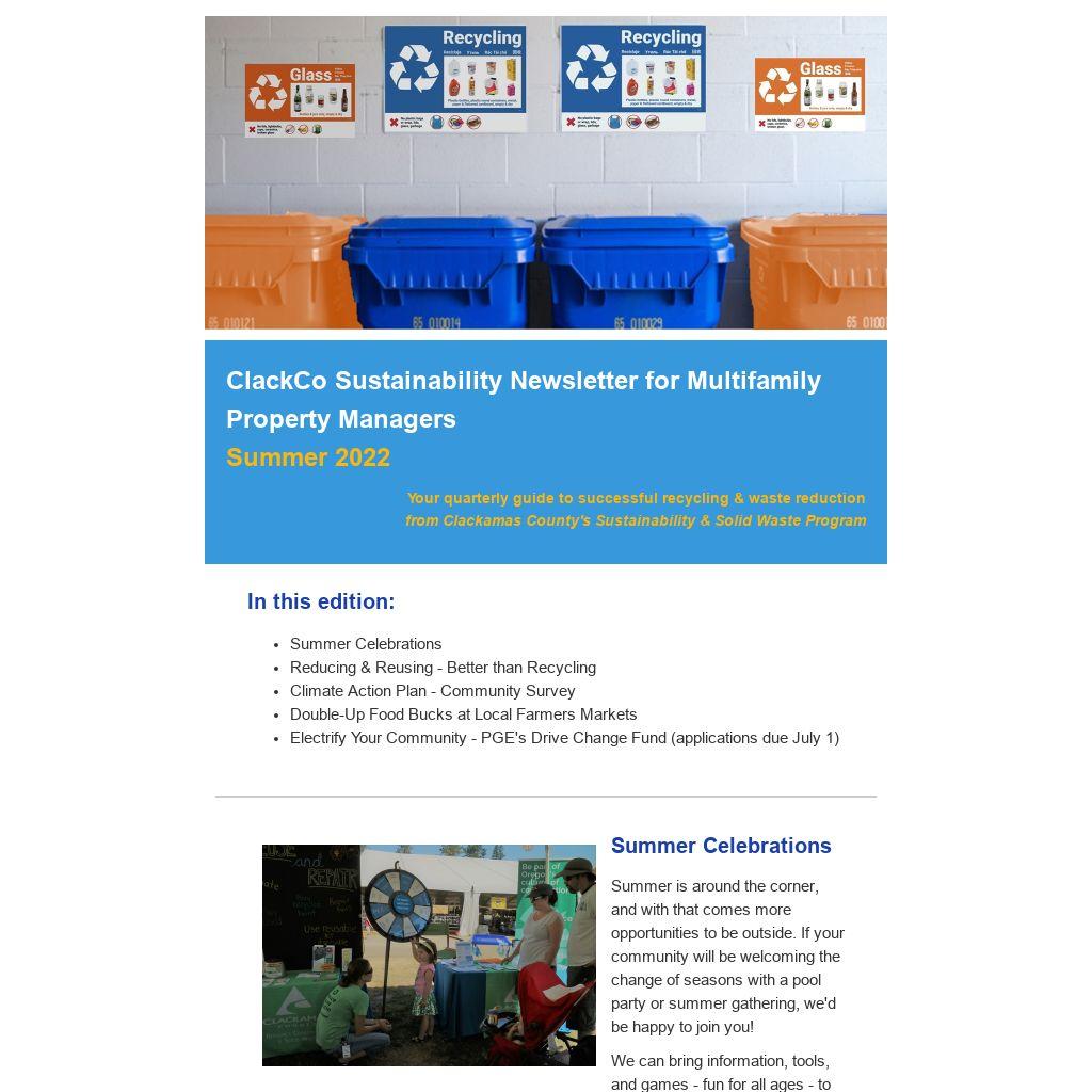 ClackCo Sustainability Newsletter for Multifamily Property Managers